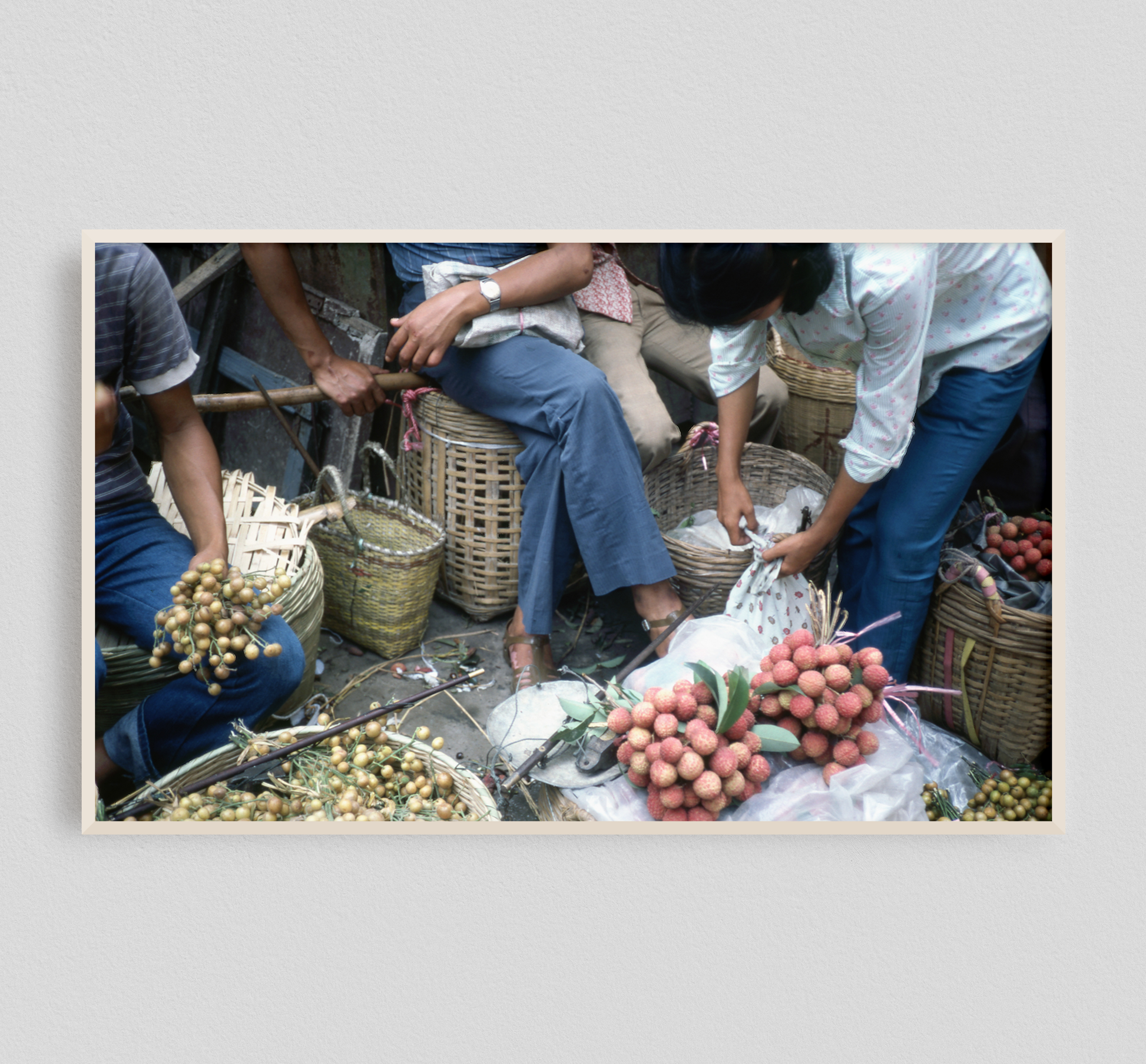 There is so much productivity happening in this photo of workers preparing and packaging produce. We can imagine what it would be like, sitting on woven baskets in community with others, bent over a tedious hands on task. The sorting, cutting, and bundling of goods spread as a continuously present demand of our labor and attention. Working hard but knowing that this is what will pave a path for your family’s future.