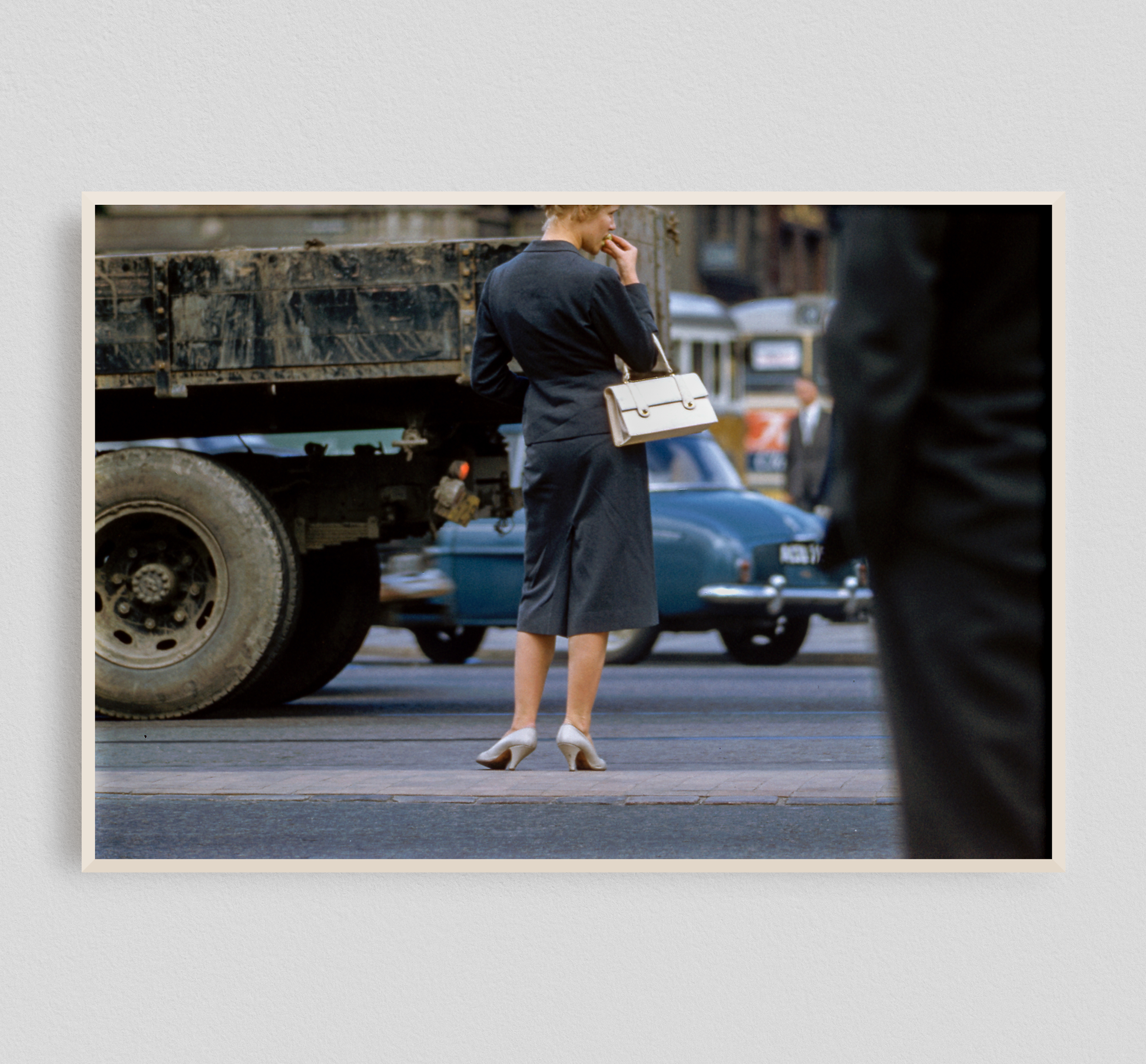 On the one hand we might notice a smartly dressed woman sneaking a bit of a snack as she waits for traffic to clear. Patient but ready, dressed to impress. On the other, maybe your vision went to the truck lumbering by with mud caked to its sides and back. Not the most glamorous object, but designed for a day’s hard work.